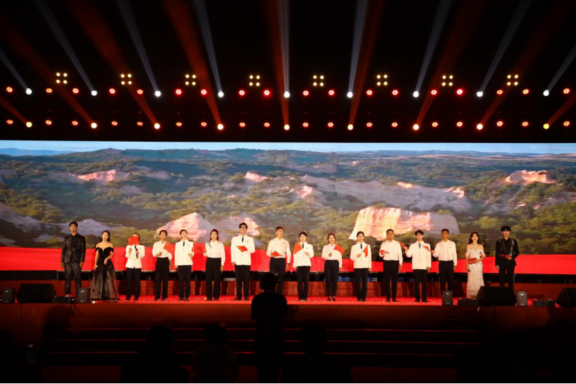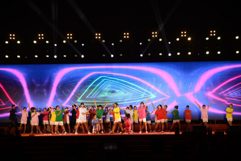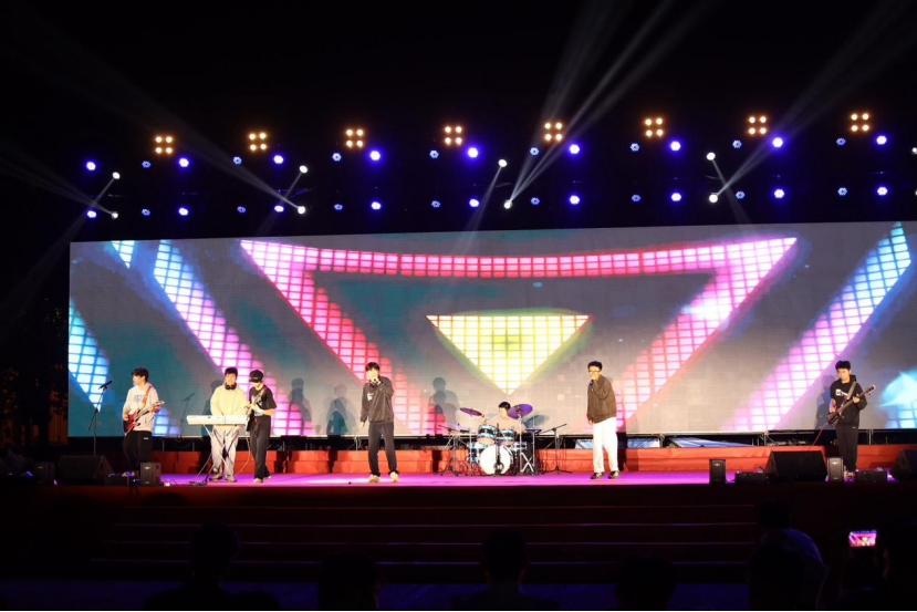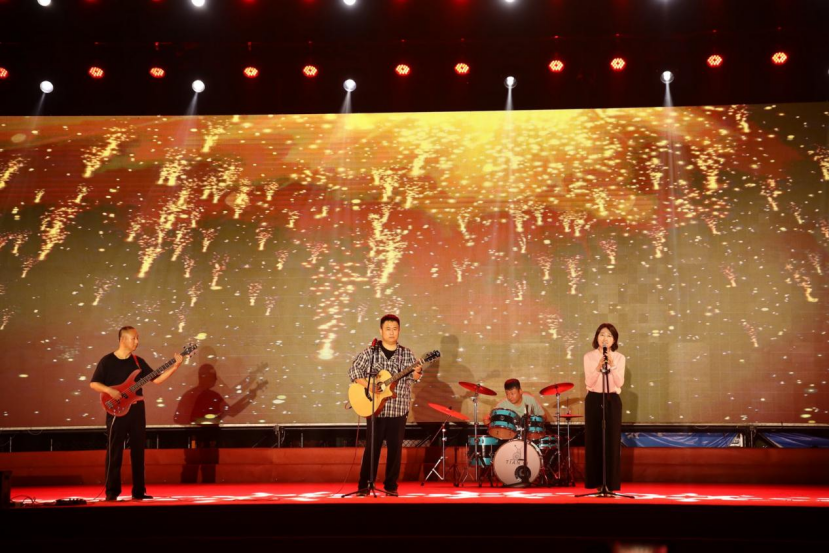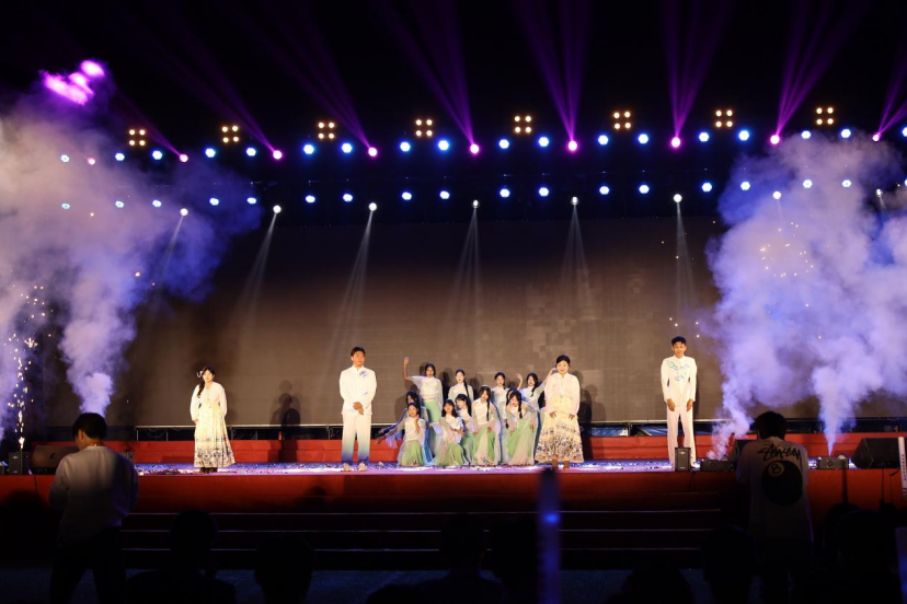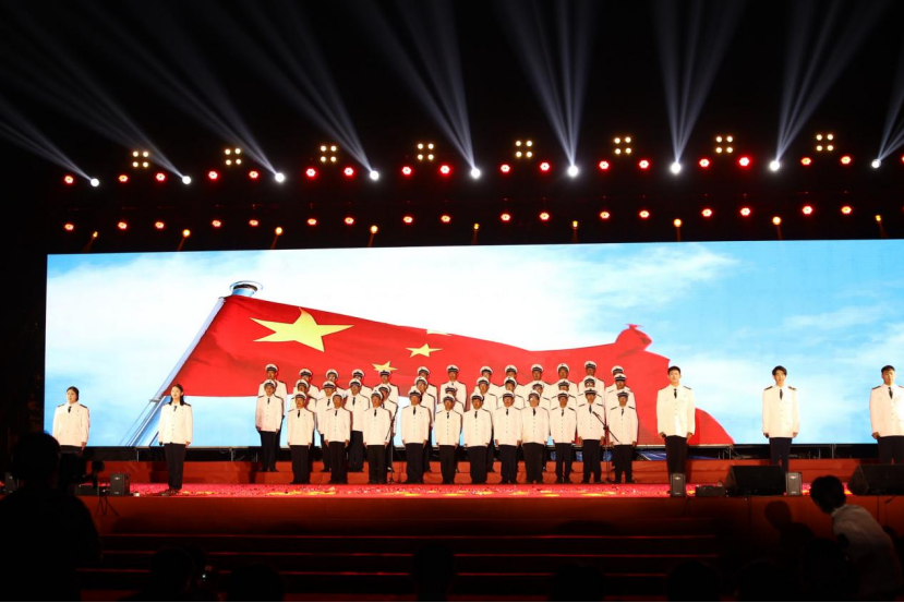 红旗飘,歌声响,青春跑,步伐强;我来展,未来望,新雨润,心波荡;校歌响,情意长,共奔赴,未来长。随后的六系辅导员代表、学院优秀学生干部登台献唱《我爱你,中国》让璀璨的星空抹上一幅中国红。