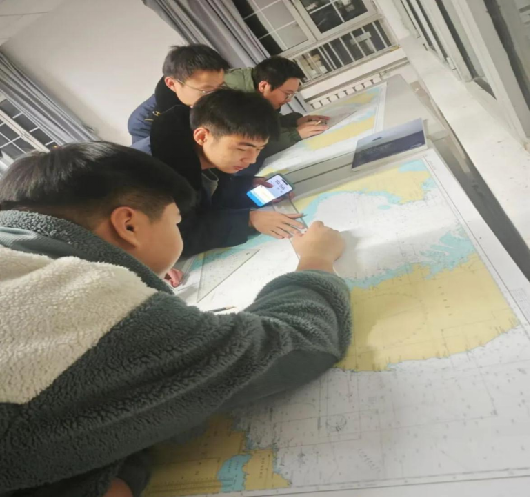 活动一开始,我们就被分配到了不同的任务,教新进社员寻找点的经纬度,量取航向航程,以及简单的航迹画法,后来黄老师还教了我们如何抽图,寻找转向点的坐标,求大圆海图的分点坐标,多张海图的拼接,又是收获满满的一次活动。
