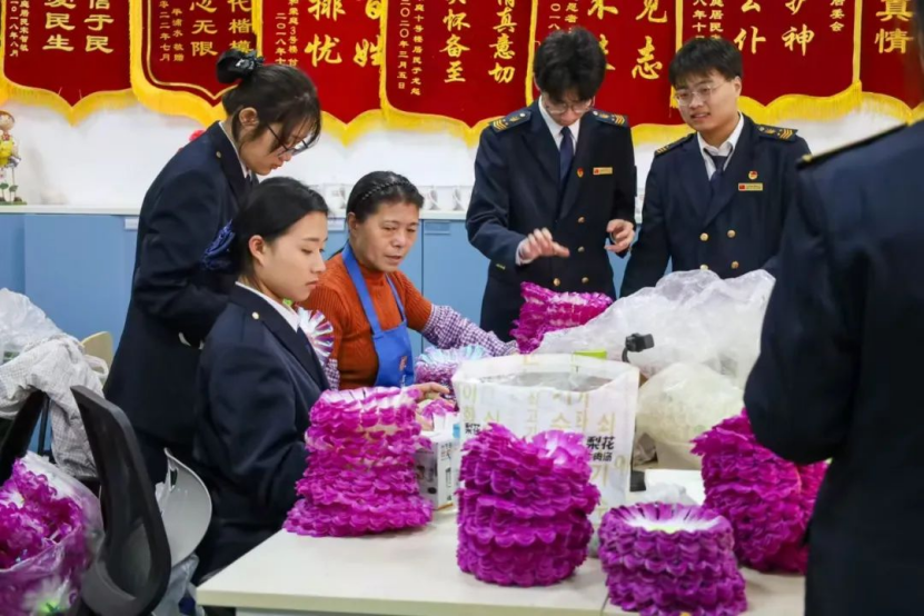 活动中,社区崔主任向志愿者们详细介绍了社区情况。随后,在社区志愿者牛伯伯的带领下,学生们分组组成“串门队”,热情周到地为居民提供服务。志愿者们亲手制作了可售卖的公益花,并将售卖所得全部交予社区居民,用实际行动赢得了居民们的一致好评。