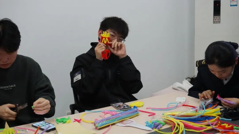 活动伊始,心理协会社团负责人详细讲解了扭扭棒手工制作的流程与技巧,让学生们了解到如何将普通材料转化为精致的暖心作品。接到制作工具与材料后,同学们迫不及待地投入创作,他们充分发挥想象力和创造力,通过裁剪、弯折、缠绕、拼接等手法,将扭扭棒制作成栩栩如生的花枝、独具风格的个性饰品和实用的创意摆件。