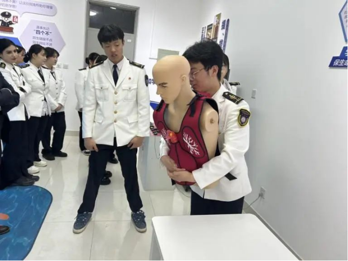 在虚拟仿真体验区,VR防溺水模拟体验系统凭借虚拟现实技术,营造出逼真的虚拟场景。同学们戴上VR设备,便能瞬间置身于虚拟场景中进行学习互动。系统通过高精度的画面呈现和音效模拟,让同学们仿佛真实地感受到溺水的危险状况,这种身临其境的体验远比传统的灌输式教育更能给同学们留下深刻印象。急救技能培训环节,同学们还学习了海姆立克急救法,踊跃进行实操演练。