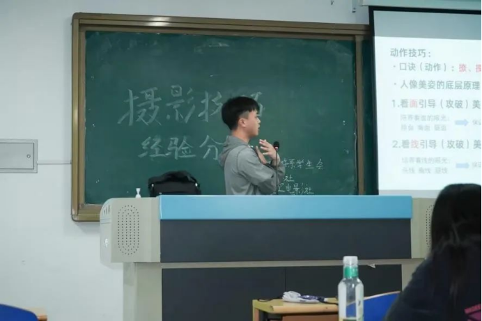 近日,由邮轮旅游系学生会、邮轮英语教研室指导,海运文学社、邮轮星空电影社联合承办了一场精彩的摄影分享活动,吸引了众多摄影爱好者参与。本次活动由有丰富摄影经验的原校级全媒体中心吴成就同学担任主讲,围绕相机与手机的认识及使用、构图动作技巧、创作者经验分享以及摄影作品赏析展开,旨在提升同学们的摄影水平,激发大家对摄影艺术的热爱,引导同学们发现生活之美,提升审美素养。