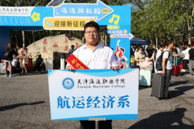 早上六点,院团委的学生志愿者们出发前往天津西站、天津站等人流密集的站点。他们手持“天津海运职业学院”欢迎牌,以笑容和周到的服务,为新生指引方向。