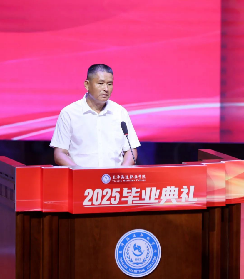航运经济系金融服务与管理专业王德菊的父亲作为家长代表表达了对学院精心育人的感谢,希望孩子们带着母校赋予的勇气与智慧,在人生新征程上乘风破浪、再创辉煌。