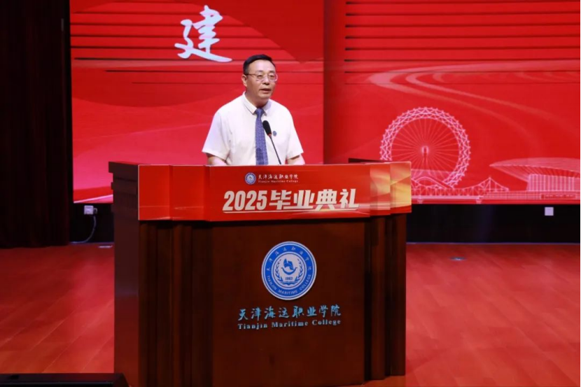 盛夏如约,骊歌声起。7月5日,天津海运职业学院2025届学生毕业典礼在水上教学训练中心报告厅举行。学院领导班子成员、各教学系部和职能部门领导、辅导员、家长和校友代表等齐聚一堂,共同见证2025届毕业生圆满完成学业、开启人生崭新篇章。学院副院长王明春主持毕业典礼。