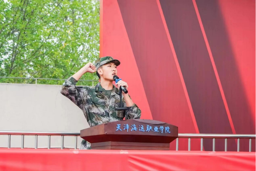 航运经济系物流24-1班学生李可然代表全体参训新生表达了对军训的期待与决心,承诺将以军人的标准严格要求自己,听从指挥,服从命令,以饱满的热情、顽强的毅力投入到军训中,展现海运学子的风采与担当。