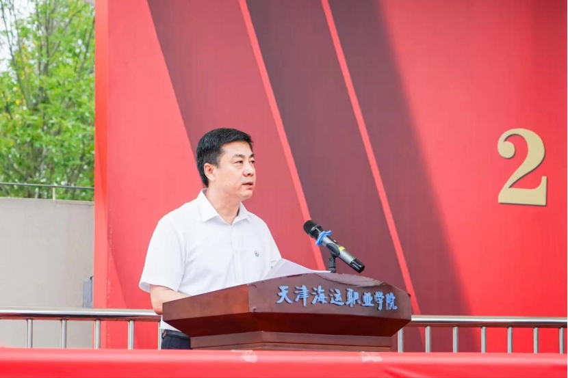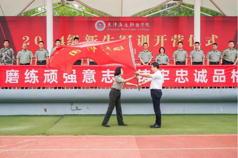 9月9日上午,天津海运职业学院举行2024级新生军训开营仪式。学院军训工作领导小组副组长、党委副书记王军,军训团全体成员及2024级全体新生参加开营仪式。仪式由军训团参谋长王金成主持。